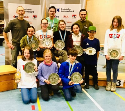 3. Alexa Nay 4. Andriu Demont e 6. Annina Tomaschett, quei sin peis cun sustegn dalla cunterpeisa.