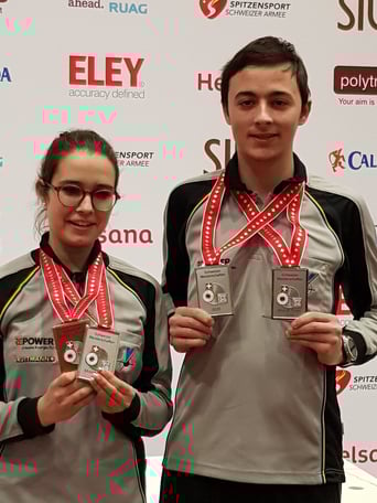 Annina e Chris cun las arbagias dil campiunadi svizer.